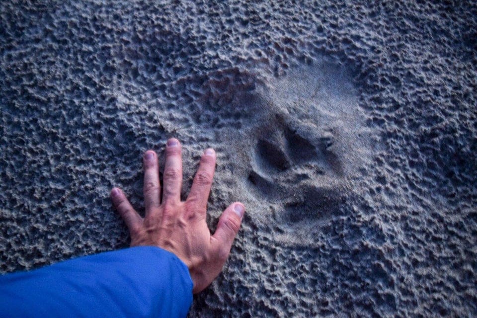 Слід вовка в порівнянні з рукою