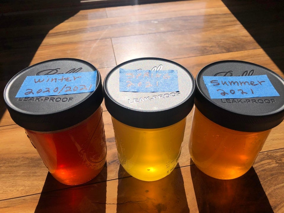 Мед з однієї пасіки, зібраний взимку, навесні і влітку цього року