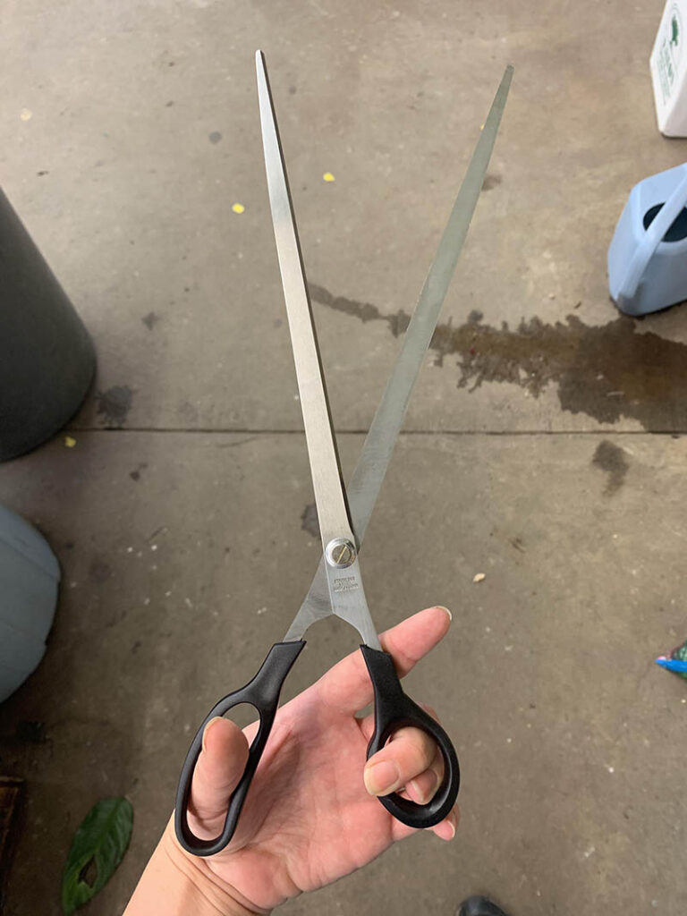 Дуже довгі ножиці для паперу в руці виглядають як зброя