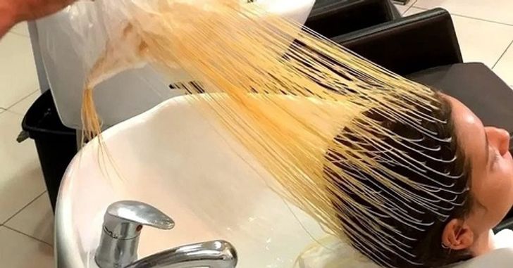 Так виглядає волосся, коли з нього знімають шапочку для мелірування