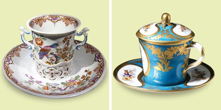 Тремблез – чашка і блюдце з бортиком або поглибленням в центрі, щоб пити чай і гарячий шоколад в дорозі або за сніданком в ліжку. XVIII століття