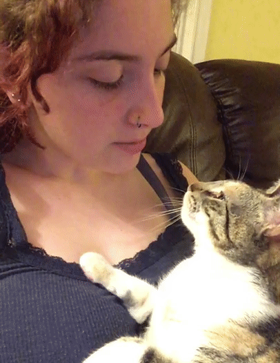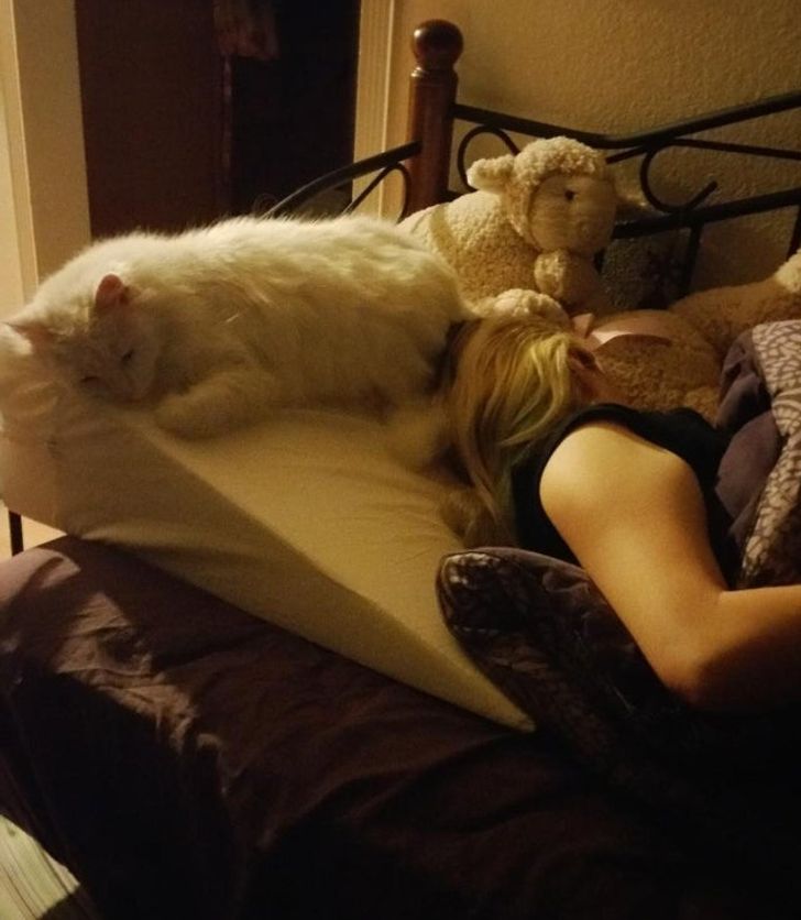 «Мені часто сняться кошмари, після яких я не можу заснути. Кожен раз, коли це відбувається, моя кішка сидить поруч всю ніч, щоб переконатися в тому, що зі мною все гаразд. Люблю її»