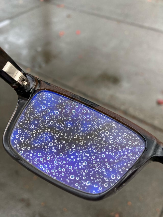 “Мої окуляри після велопрогулянки під мрячним дощем”