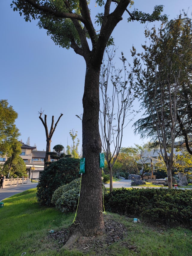 У Китаї деревам ставлять крапельниці з поживними речовинами