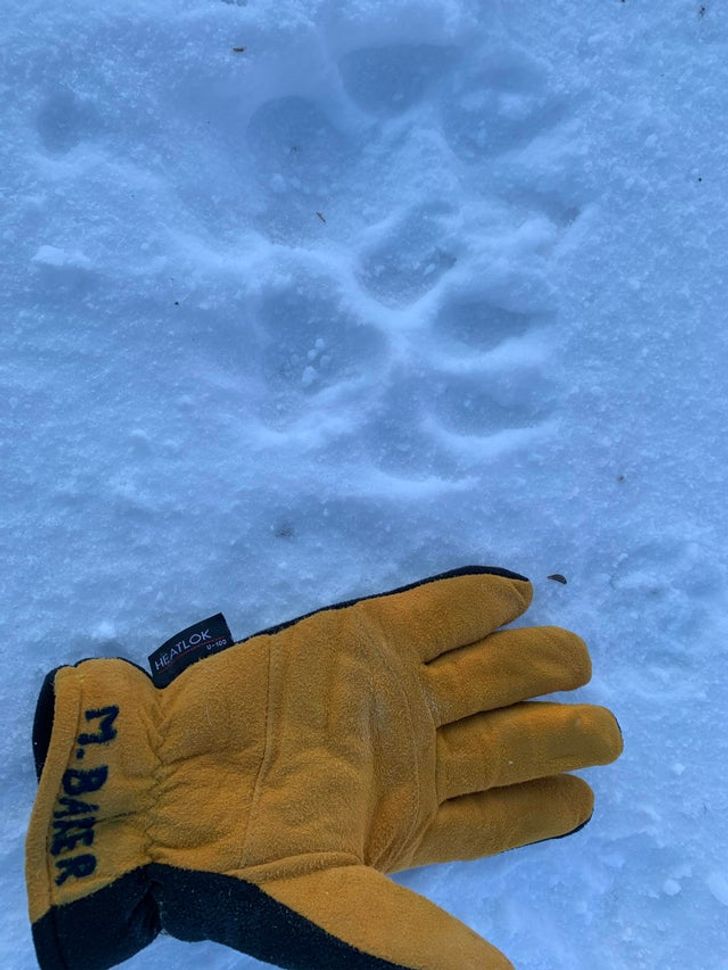«Днями побачив кілька вовчих слідів. Робоча рукавичка розміру XL для порівняння»