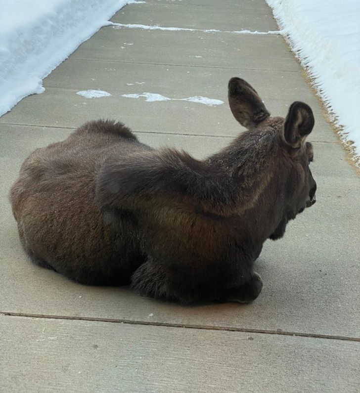 Тут тварини користуються благами людства. Наприклад, місцевий лось відпочиває на тротуарі, що обігрівається