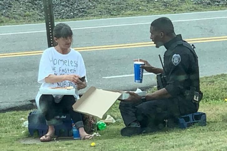 Цей поліцейський із Північної Кароліни вирішив розділити свою обідню трапезу з бездомною.
