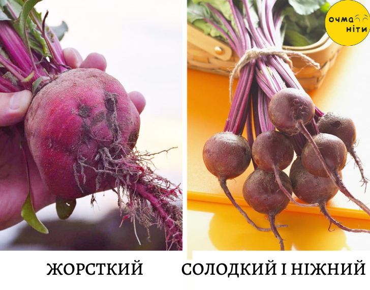Купуючи буряк, краще вибирайте коренеплоди із зеленню: по ній легко визначити, що овоч точно свіжий. Але знайти такі не завжди виходить, тому варто звернути увагу на їх розмір та корінь. Краще вибирати невеликий буряк з не сильно волохатим хвостиком, тому що інакше є ризик отримати жорсткий і несолодкий плід.