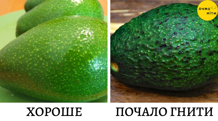 Будь-які яскраво виражені плями, що відрізняються від основного кольору, говорять про те, що з плодом щось не так. Краще уникати авокадо з темними мітками на шкірці, оскільки це ознака початку процесу гниття. Також можна натиснути на область поруч із плодоніжкою: якщо вона продавилася, то, швидше за все, плід перезрів.