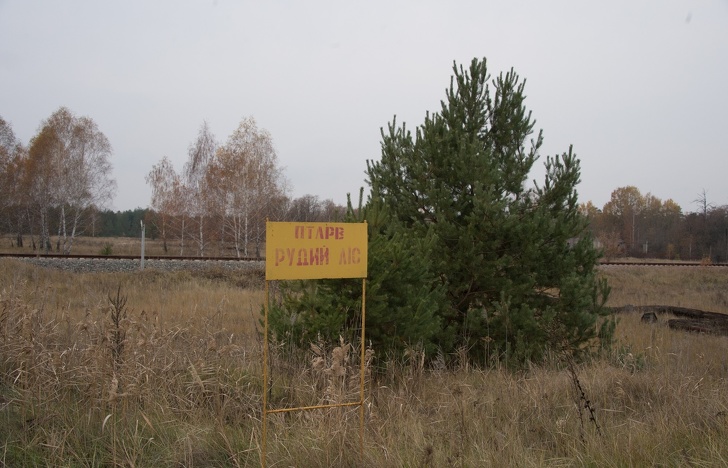 Рудий ліс отримав таку назву через те, що його дерева після вибуху забарвилися в жовто-червоні кольори. Але навіть на цій ділянці почали з’являтися зелені рослини.