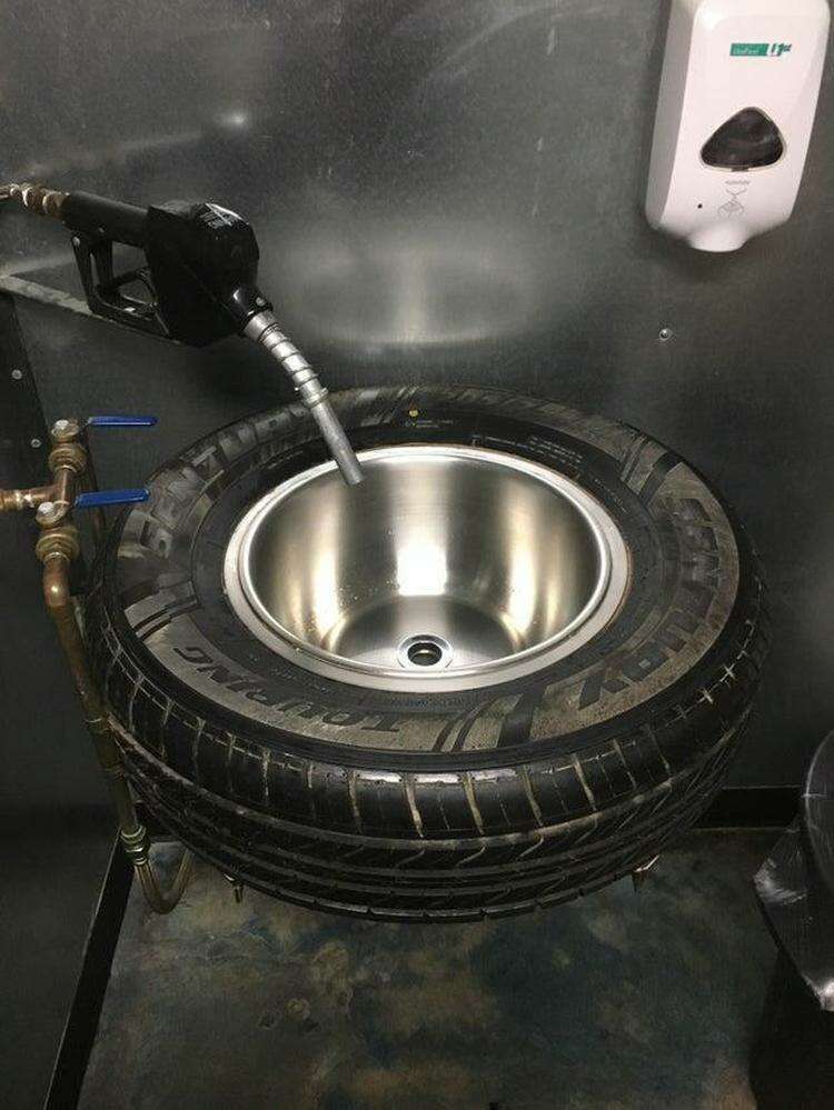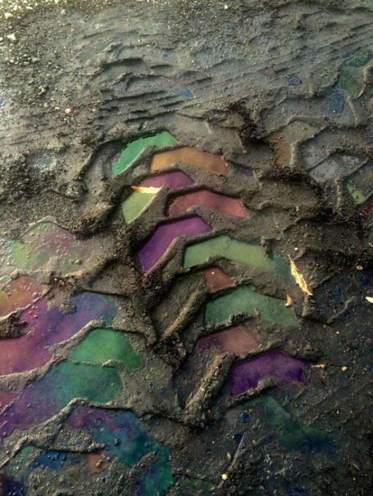 У слідах від шин залишилося машинне масло, зробивши їх схожими на вітраж
