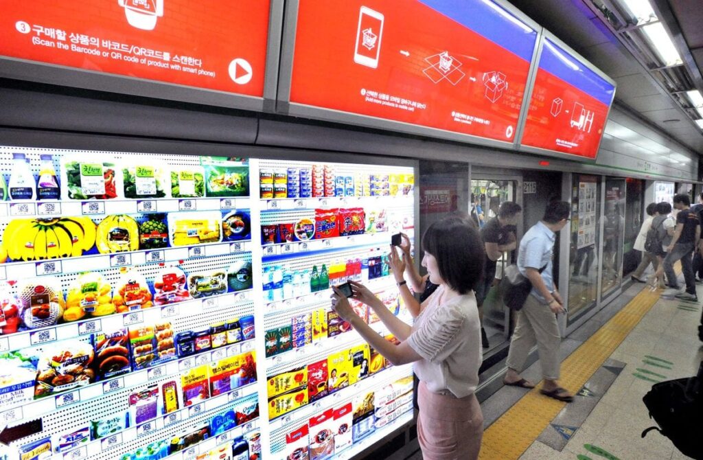 У Південній Кореї розпочали тестування перших віртуальних магазинів. Що це таке? Компанія Homeplus встановила спеціальні екрани із зображенням товарів у натуральну величину та їх описом. Під кожною позицією вказано штрихкод. Щоб придбати бажаний продукт, покупцеві достатньо відсканувати штрихкод через спеціальний додаток та оформити замовлення. Планується, що найближчим часом такі вітрини-екрани з’являться у інших містах.