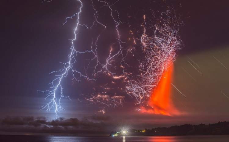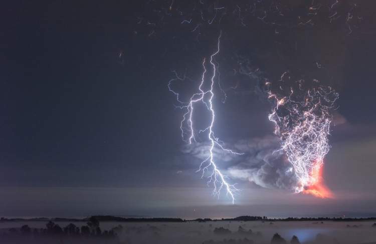 Блискавка під час виверження вулкана Кальбуко в Чилі