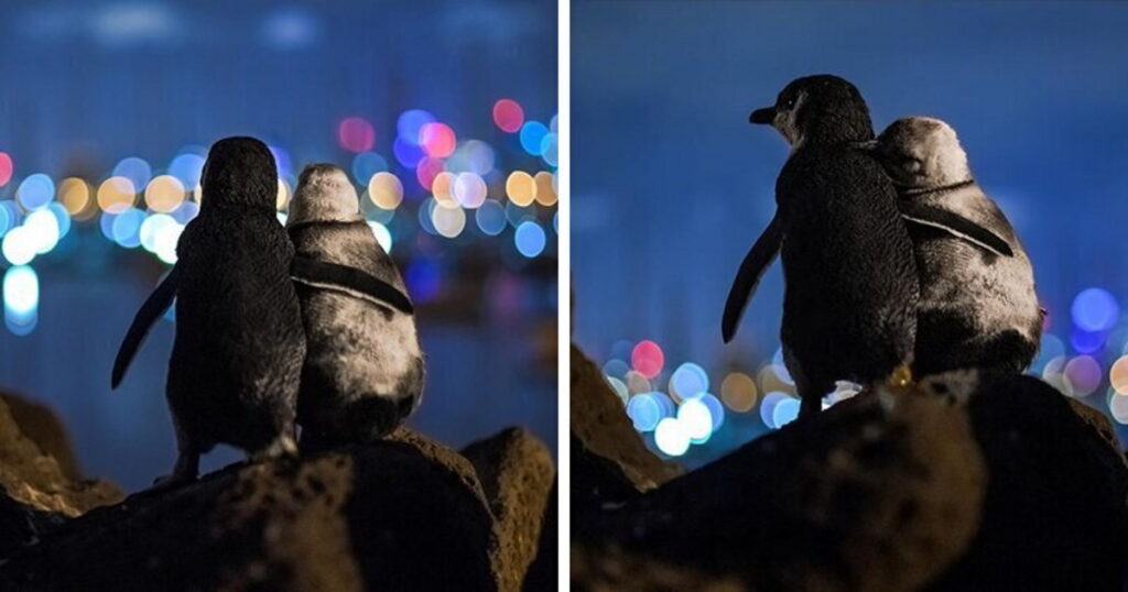 За словами Тобіаса, ці двоє годинами стояли на скелі, тримаючись за ласти, і дивилися на горизонт Мельбурна, який зливається з лінією океану вогнями міста. Білий пінгвін – це самка, яка втратила свого партнера, поруч з нею – самець, який пережив те саме. Тепер вони регулярно зустрічаються і втішають один одного.