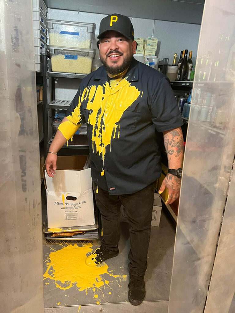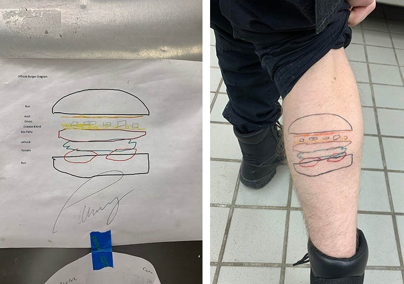 “Мої кухарі регулярно плутали місцями порядок шарів у нашому фірмовому гамбургері і я зробив для них нагадування. Один із кухарів набив собі його на ногу”