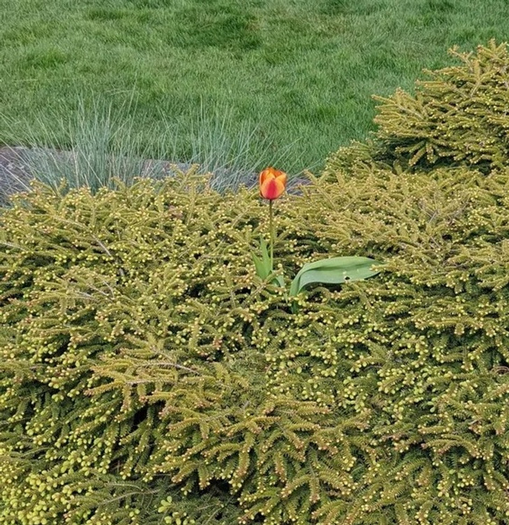 Надзвичайно рішучий тюльпан, що проріс крізь кущ