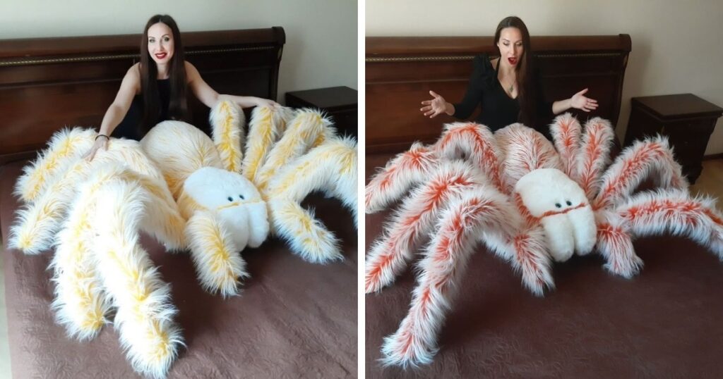 Такий павучок може виступати як подушка або звичайна іграшка. Він викличе лише позитивні емоції та анітрохи не налякає.