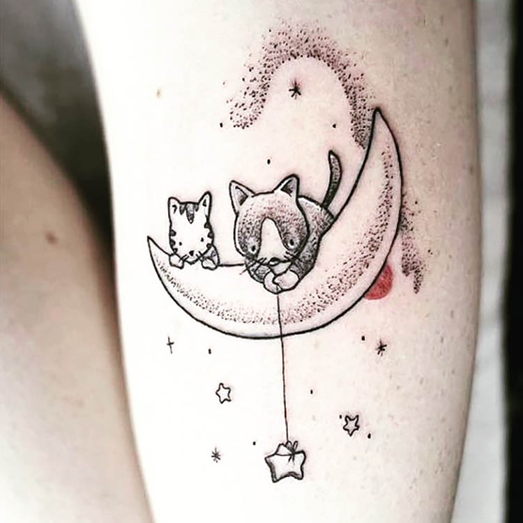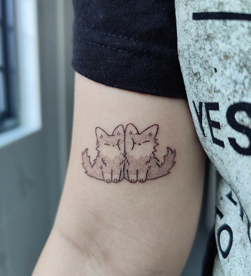 “Я вірю, що мої маленькі милі вовченята приносять мені удачу. Це тату виконано у техніці хендпоук, тобто коли малюнок набивають голкою вручну, без машинки”