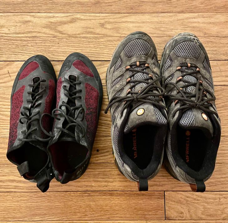 Взуття на знімку одного розміру, різниця лише в тому, що ліворуч туфлі для скелелазіння, а праворуч кросівки для хайкінгу
