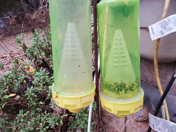 Ліворуч пастка для шершнів зі спеціальною рідиною, праворуч – змінена версія приманки з яловичим фаршем в основі
