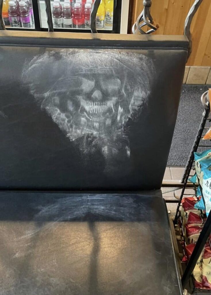 Пильна футболка будівельника залишила на спинці сидіння череп