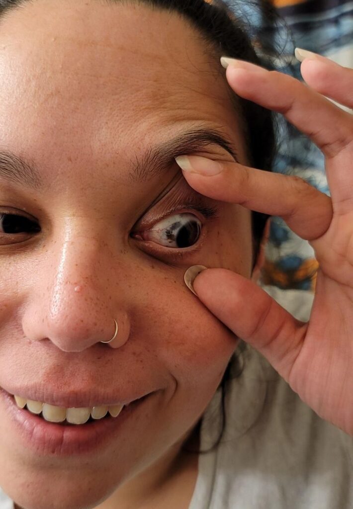 «6 років тому я відправив фото ока моєї дружини її лікарю, на що він відповів, що це було найдивніше, що він коли-небудь бачив. З того часу мої навички фотографії трохи покращилися, так що ось нове фото, яке я зробив кілька днів тому»