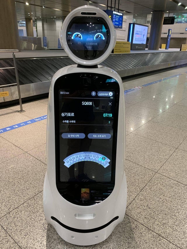 Такі роботи функціонують у аеропортах. Вони допомагають пасажирам дізнатися актуальну інформацію про рейси