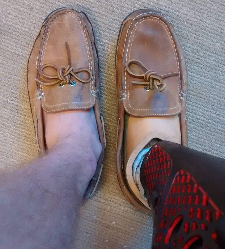 «Різниця у зносі взуття між моєю звичайною ногою та протезом через рік»