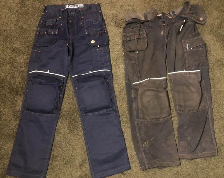 «Мої робочі штани після 6 місяців використання та нові»