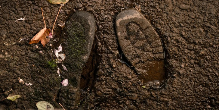 «Я знайшов цю пару черевиків замурованих у сторічний бетон, який згодом був розмитий водоспадом»