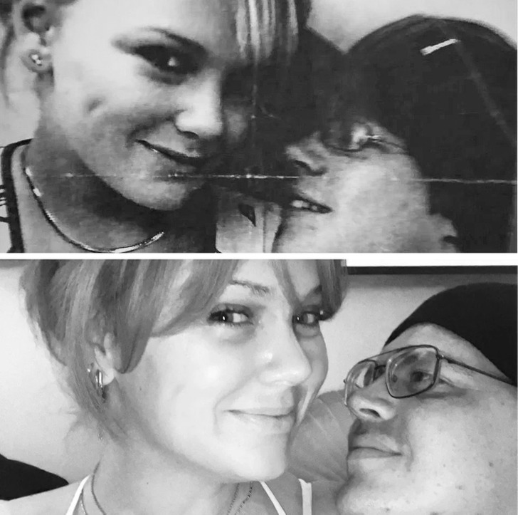 «Цього літа я була на зустрічі випускників і в результаті знову закохалася у свого шкільного коханого. Ось ми коли нам було по 14 років і зараз. Нам по 30 років»