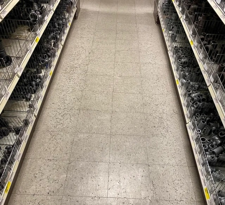 Сліди на підлозі від регулярного падіння сталевих деталей протягом багатьох років