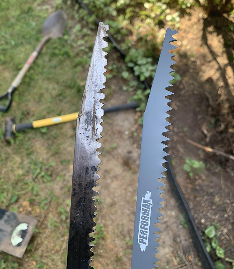 11. Пила була в роботі всього 15 хвилин, але вже настільки відрізняється від тієї, якою не користувалися жодного разу. Так сталося тому, що нею працювали в багнюці, серед каміння, намагаючись вирізати з землі великий старий корінь.