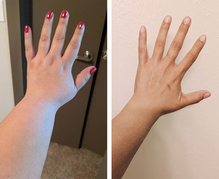 12. Зазвичай, люди, які худнуть, порівнюють розмір своєї талії, а я вирішила показати, як змінилася моя рука, коли я скинула 55 кг.