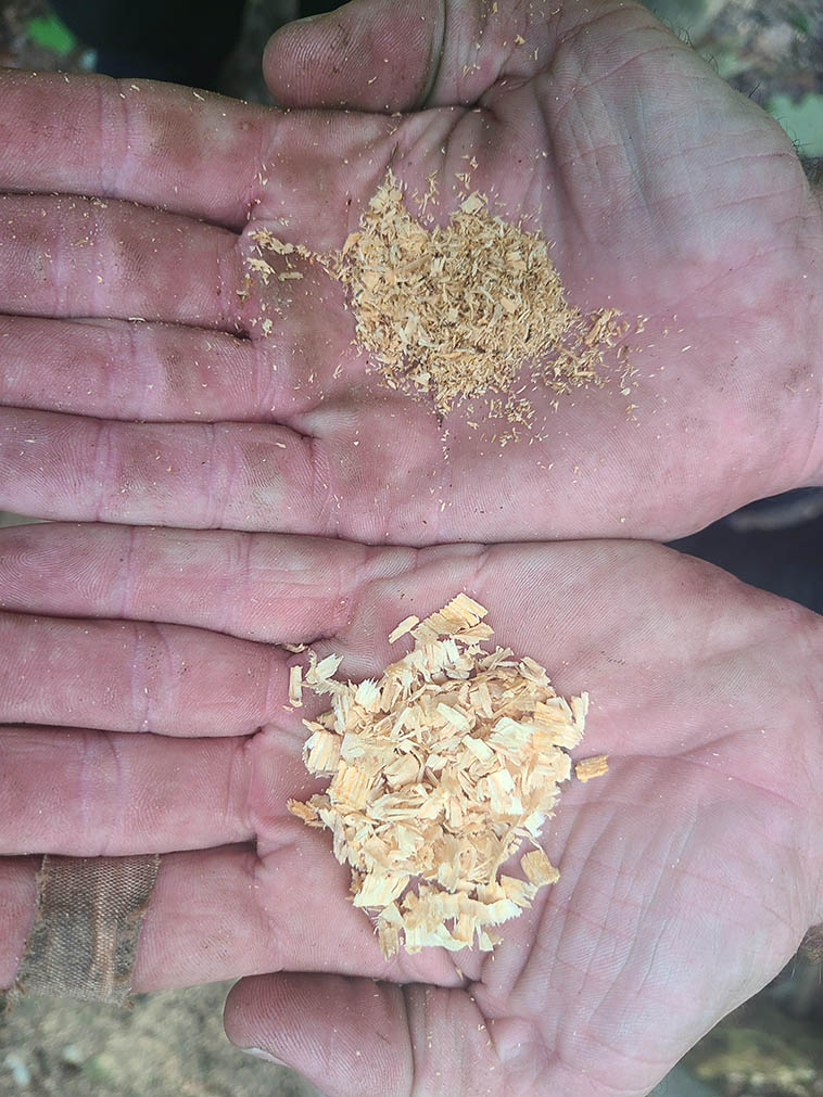 16. Ось як виглядає тирса до і після того, як змінив ланцюг у бензопилі.