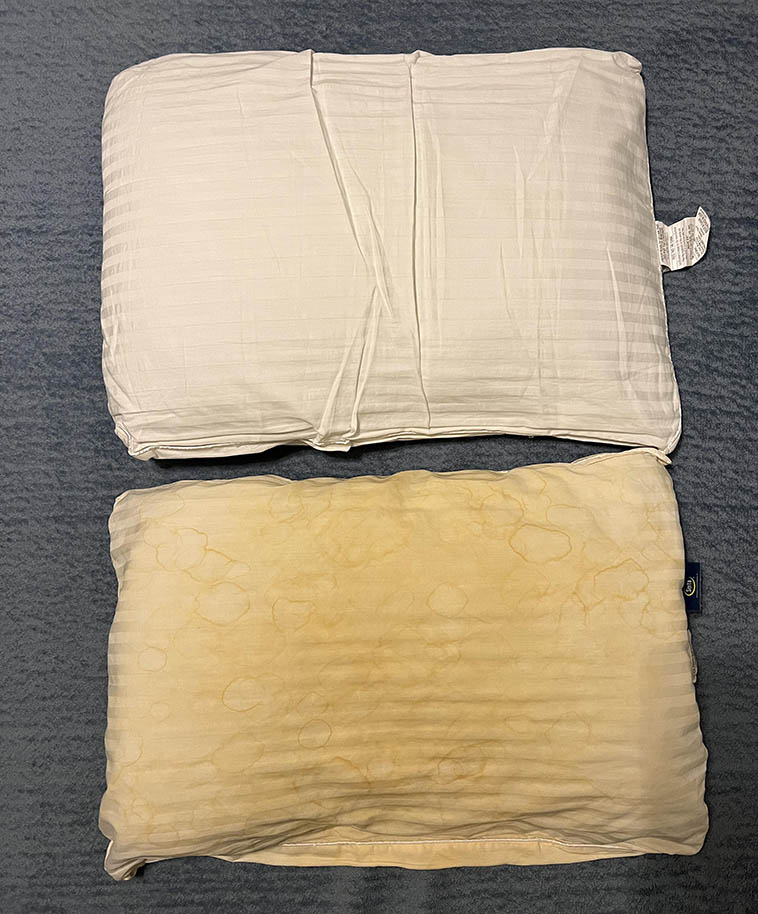 3. Ми з дружиною купили ці дві подушки 4 роки тому. А тепер вгадайте, на який спить вона, а на якій я?