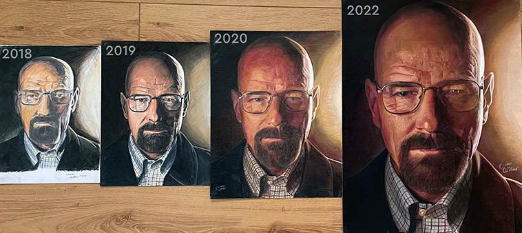 4. Ось уже 4 роки я малюю портрет Уолтера Уайта, щоб оцінити свій прогрес за цей час