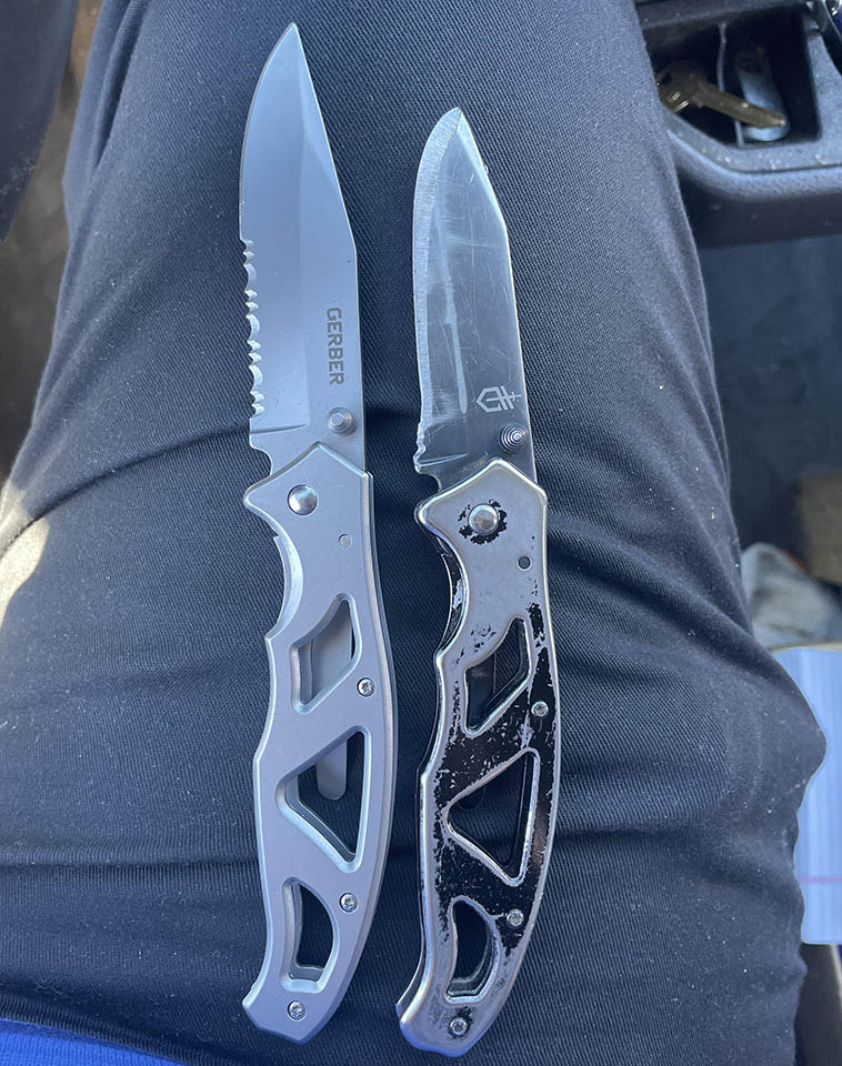 7. Ці два ножі однакові – одна й та сама модель. Тільки тим, що лежить праворуч, я користувався протягом 13 років, а той, що ліворуч – новий.