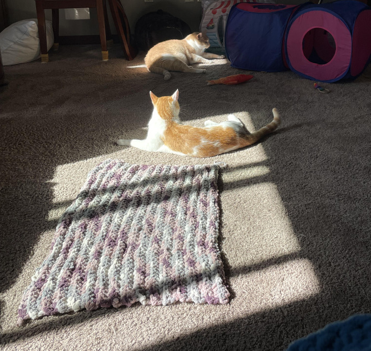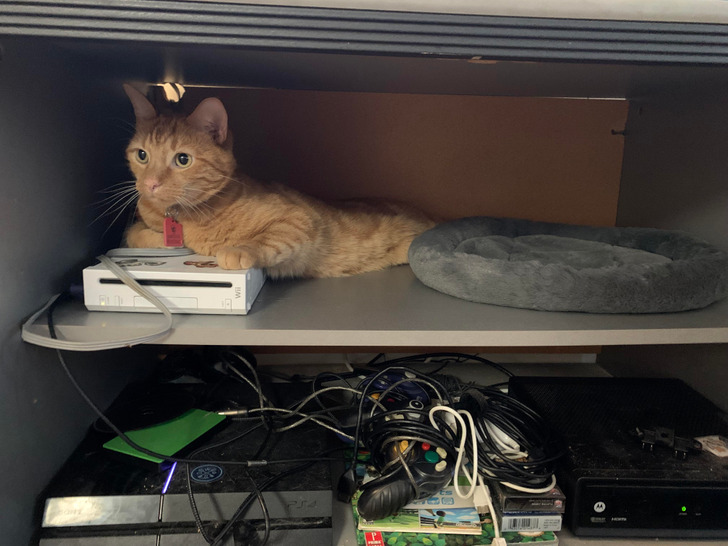 «Постійно його звідси виганяв. Нещодавно подумав: “Гаразд, нехай сидить”. І поклав йому зручну лежанку. Кіт у захваті»