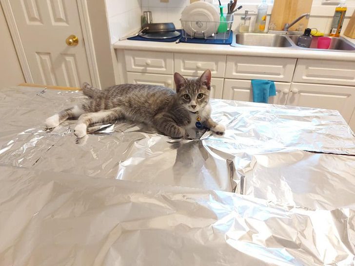 «Мені сказали, що якщо постелити на стільницю фольгу, то кіт не залізатиме на неї…»