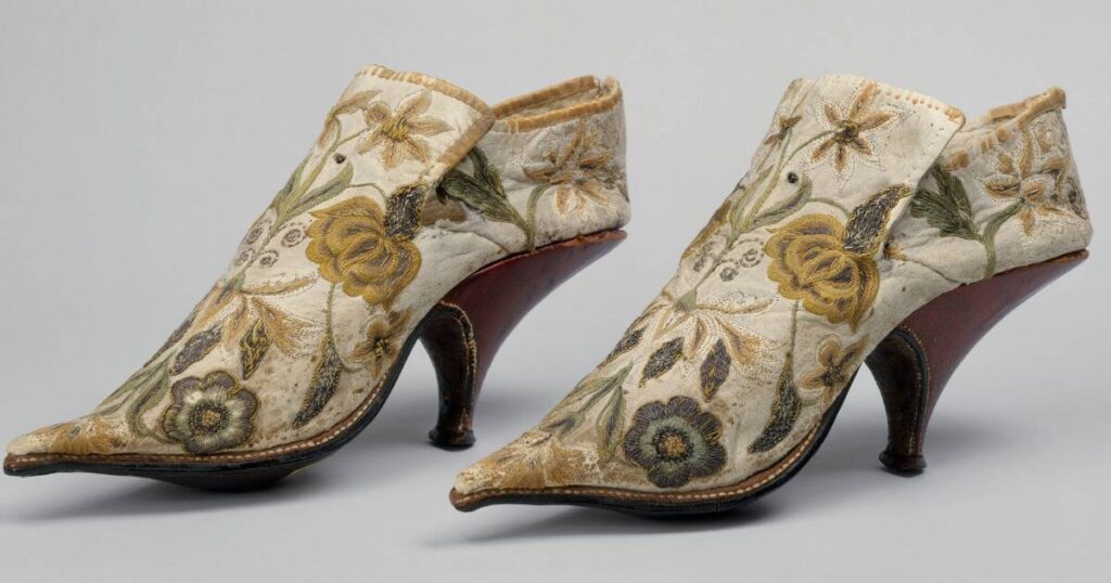 Чоловіче взуття з шовку та шкіри, 1690–1700 роки, Франція