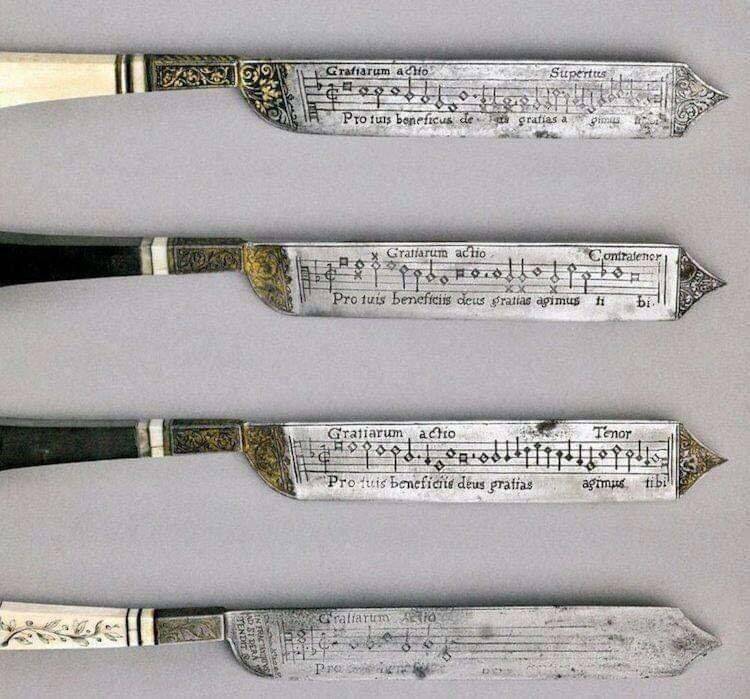 Набір ножів 16-го століття з вигравіруваними нотами