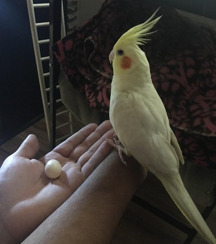 «Мій папуга Енцо, якого ми вважали хлопчиком, сьогодні вранці зніс яйце»
