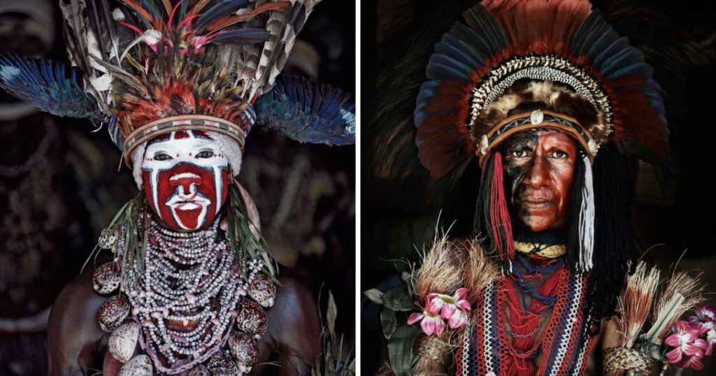 Одне з племен містечка Гороко (Папуа-Нова Гвінея) у святкові дні прикрашає себе різноманітними кольоровими матеріалами. У їхньому середовищі дуже цінуються пір’я райських птахів і папуг, а найціннішою окрасою вважається намисто з черепашок. Можна помітити, наскільки витончені і продумані їхні головні убори. Таке шикарне святкове вбрання можуть дозволити собі тільки найздоровіші та найбагатші в племені.