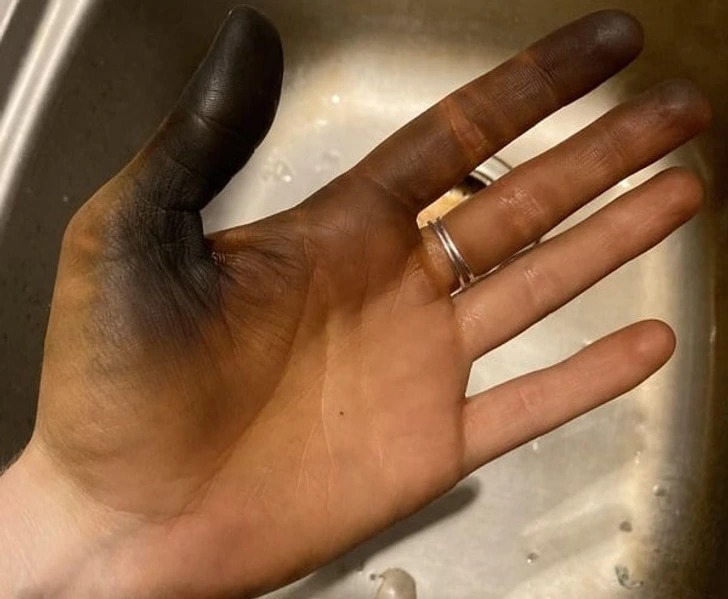 «Мої руки після збирання та очищення диких волоських горіхів на нашому задньому дворі»