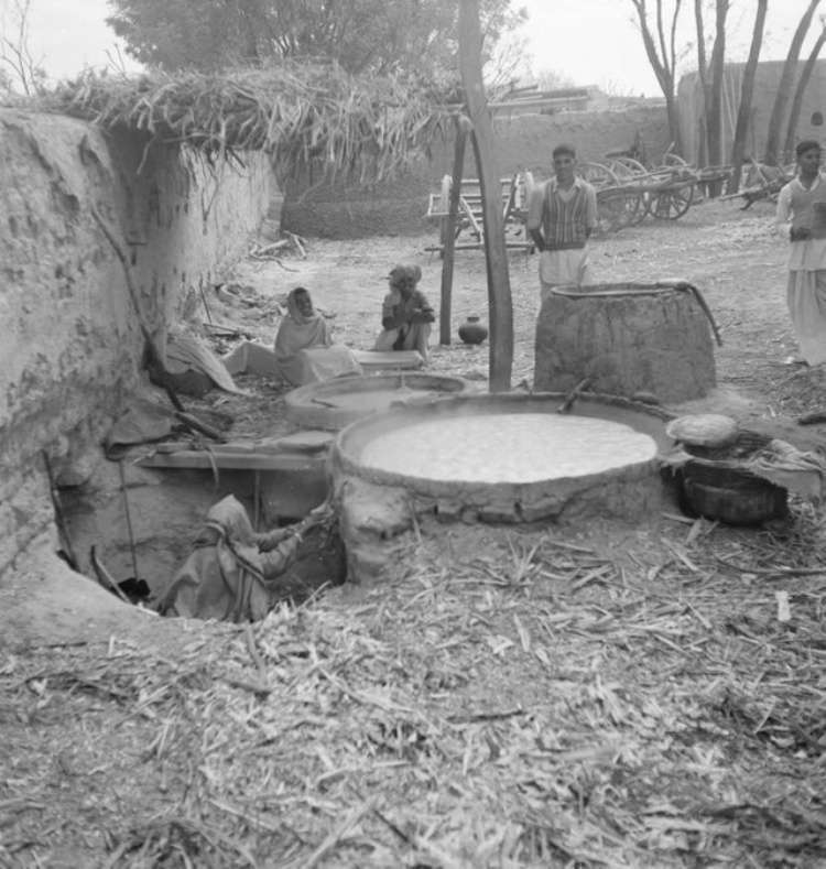 3. Жінка розпалює вогонь, щоб закип’ятити сік цукрової тростини, Індія, 1952 рік