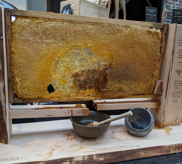 О-о-о, це ви влипли! Бо вже була історія, коли бджоли робили блакитний та зелений мед. Виявилося, що вони ласували залишками цукерок із фабрики неподалік. А там були штучні барвники. © safarimotormotelinn / Reddit