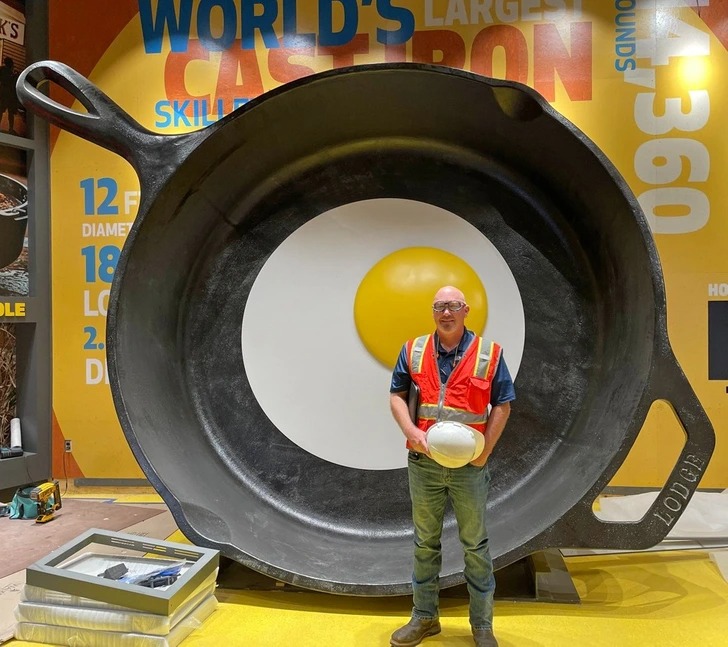 «Мій тато надіслав мені фотографію найбільшої у світі чавунної сковороди. 3,66 м у діаметрі та майже 7,5 т ваги»
