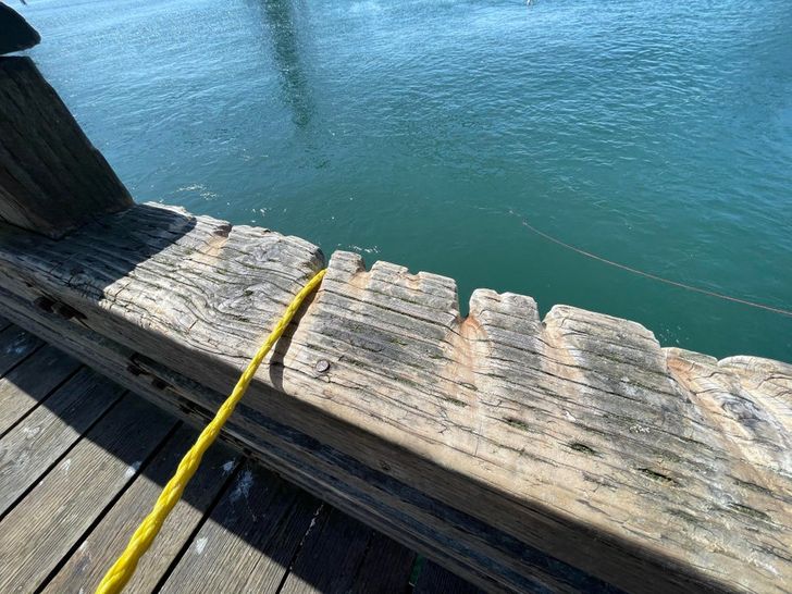 Це пірс у Ньюпорті. Тут люди ловлять крабів у пастки. І ось які на них утворилися сліди від тросів