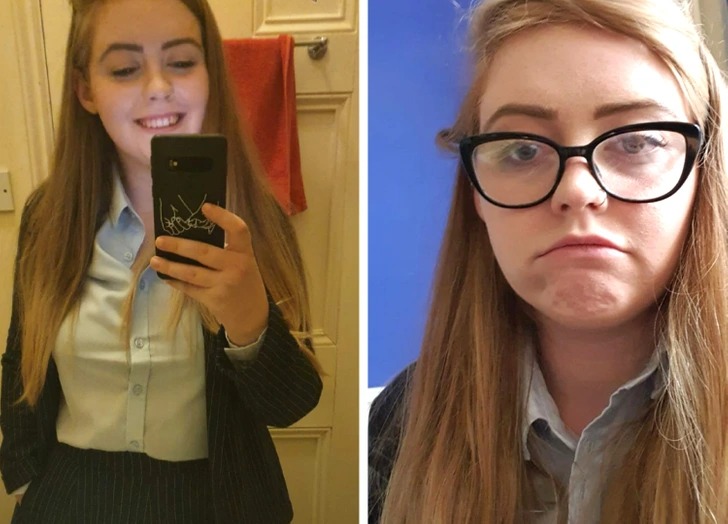 “Моя дівчина до і після першого дня роботи вчителькою”
